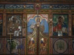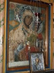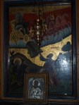 Οι εικόνες του που βρίσκονται στο ναό, κυρίως οι μεγάλες του τέμπλου, είναι έργα πολύ γνωστών συντεχνιών αγιογράφων που κατάγονταν από την Γαλάτιστα και κυρίως από την Κολακιά. Αγιογραφήθηκαν μεταξύ του 1840 και 1865. Ξεχωριστή είναι η εικόνα της Παναγίας που βρίσκεται στο τέμπλο του ναού. Επονομάζεται και ως “Παναγία με τις μαχαιριές” από τα σημάδια που έγιναν από τα ξίφη των Τούρκων κατά την καταστροφή του χωριού. Σώθηκε από τα χέρια τους κατά τρόπο “θαυματουργικό”, όπως πολύ χαρακτηριστικά σημειώνεται στη βάση της εικόνας, από τους κατοίκους του χωριού.