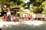 Η έναρξη των εκδηλώσεων έγινε το Σάββατο στις 10.30 το πρωί. Τα πιτσιρίκια με τα χρώματα ανά χείρας, είναι έτοιμα να αποτυπώσουν τις εικόνες του χωριού τους στις λευκές κόλες χαρτί που τους έχουν δοθεί. Η χαρά και η ικανοποίησή τους ανείπωτη. Κάποια από αυτά, όπως μας εκμυστηρεύτηκαν, ξύπνησαν από τις 7:00 π.μ. για να προετοιμαστούν όσο καλύτερα γίνεται! Τα αποτελέσματα των προσπαθειών τους πραγματικά καταπληκτικά. Τα σχήματα και τα χρώματα αποκτούν νόημα και ζωντάνια κάτω από τα μικρά δαχτυλάκια. Τα μεγαλύτερα παιδιά, 10 ως 14 χρονών, αναλαμβάνουν να φιλοτεχνήσουν το πανό των εκδηλώσεων. Αφού τους δόθηκαν οδηγίες και χρώματα στρώθηκαν στη δουλειά. Η συνεργασία μεταξύ τους μας άφησε όλους άφωνους. Το ένα παιδί συμπλήρωνε, διόρθωνε, επιβράβευε και βοηθούσε το άλλο με σεβασμό και αγάπη. Ο στόχος τους κοινός και η επίτευξή του έφερε την απόλυτη ικανοποίηση και μοίρασε χαμόγελα. Οι ενήλικες πήραμε ένα μεγάλο μάθημα για το τι σημαίνει «συλλογικότητα».