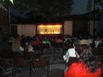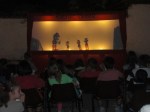 Όπως πέρσι, ο Αντιπρόεδρος του Συλλόγου κ. Νίκος Παπαδούδης, με συσσωρευμένη πλέον εμπειρία, μαζί με τον ακούραστο Μιχάλη Κωτινούδη είχαν φροντίσει από νωρίς για τον εφοδιασμό των μικρών θεατών και των συνοδών τους με φρεσκοψημένο και γευστικό ποπ-κορν. Όταν όλα ήταν έτοιμα και αφού βράδιασε γύρω στις εννέα το βράδυ ξεκίνησε η παράσταση της Σκιάς Όναρ του Δημήτρη Καρόγλου με το έργο “Ο Μέγας Αλέξανδρος και το Καταραμένο Φίδι”. Ο Καραγκιόζης που δεν χάνει ποτέ το κέφι του με την μεγάλη όρεξη του για ζωή ήταν εκείνος που όπως πάντα «έκλεψε την παράσταση». Οι διάλογοί του με τον Χατζηαβάτη, καθώς παρακούει τις εντολές του πασά με τον Εβραίο αλλά και με όλους τους υποψήφιους, για να σκοτώσουν το καταραμένο φίδι, χάρισαν τρανταχτά γέλια στα μικρά παιδιά. Η παράσταση έληξε με τον Μέγα Αλέξανδρο να σκοτώνει το φίδι και να απαλλάσσει τους ανθρώπους από τα δεινά του χωρίς μάλιστα να δεχθεί τίποτα από όσα του προσφέρει ο πασάς ως ανταμοιβή. Ο Σύλλογος καληνύχτισε τους μικρούς θεατές προσφέροντας τους την καθιερωμένη δεύτερη παρτίδα ποπ-κορν αφήνοντας τους και φέτος ευχαριστημένους.